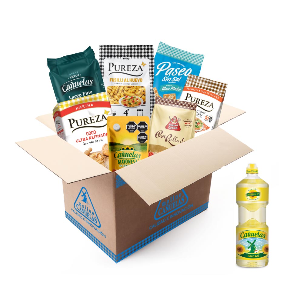 | Productos dentro del Box | Aceite de Girasol, Harinas, Pan rallado, Arroz, Aderezos, Pastas, Galletitas |